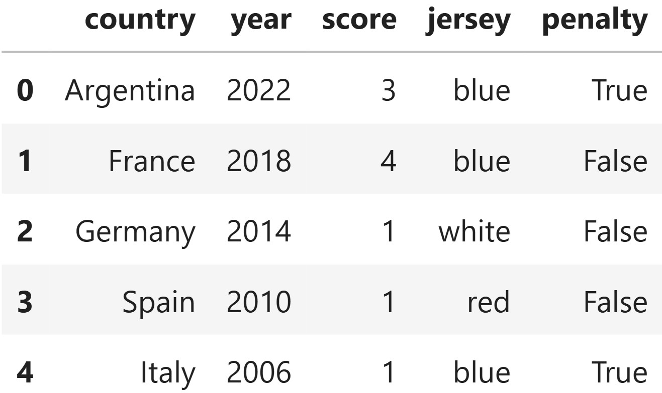 by a tiebreaker, called a “penalty shoot-out.” The first few rows of