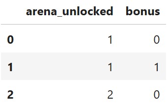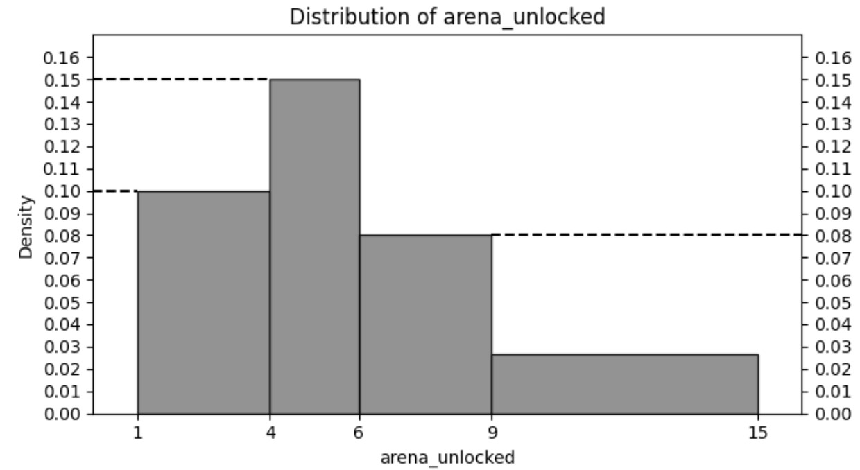 "arena_unlocked" column (e.g. 3 \rightarrow "Arena 3").