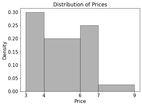 So the proportion with price strictly less than 6 dollars is 0.30 + 0.40 = 0.70.